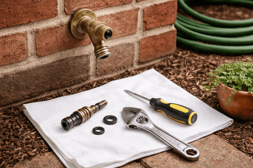 - Plastic sheeting or garbage bags for covering any outdoor electrical outlets, light fixtures, and doorbells before washing — water intrusion into exterior electrical components is the most common power washing damage and completely preventable with 60 seconds of prep