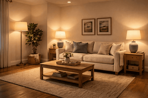 - Add a table lamp for warmth and additional illumination